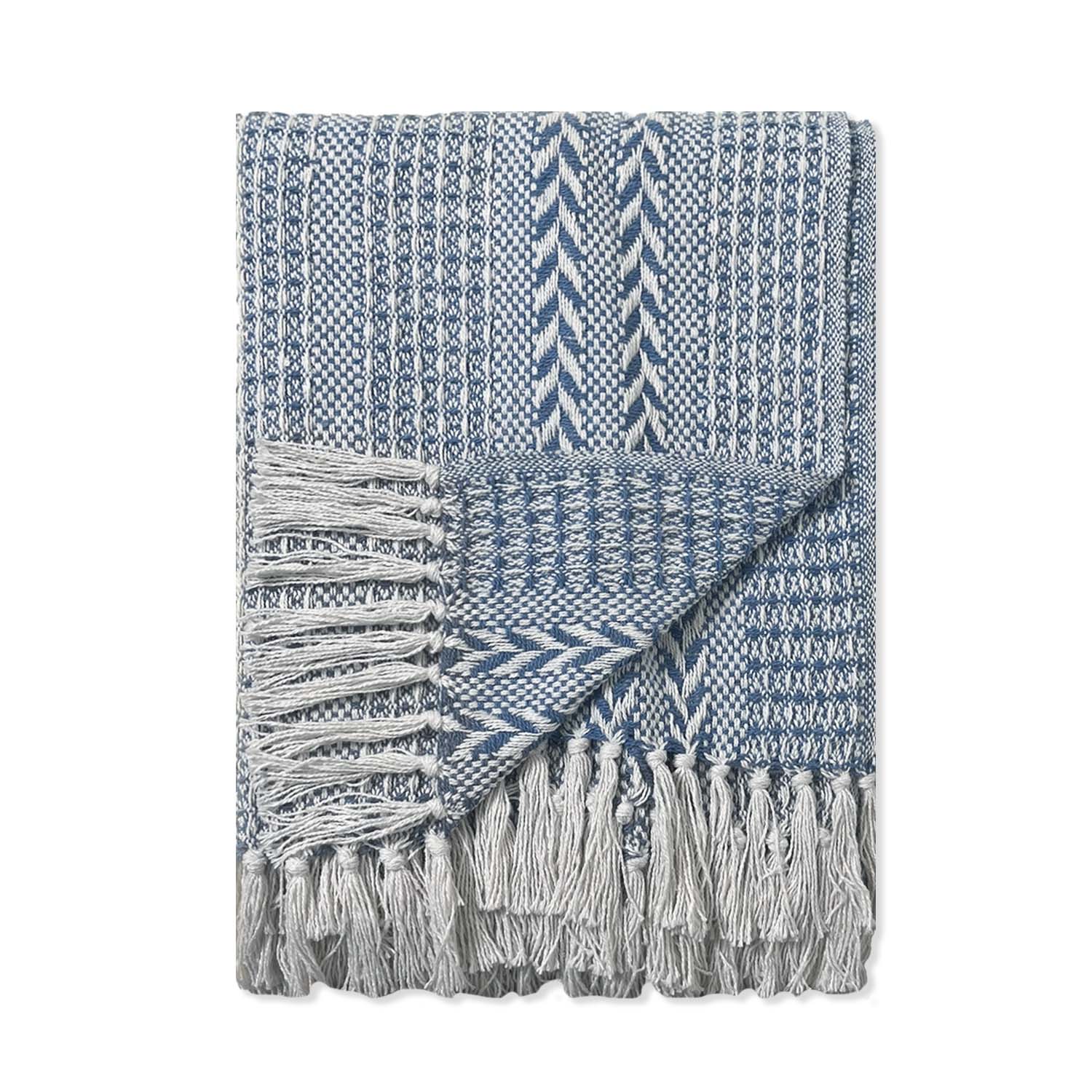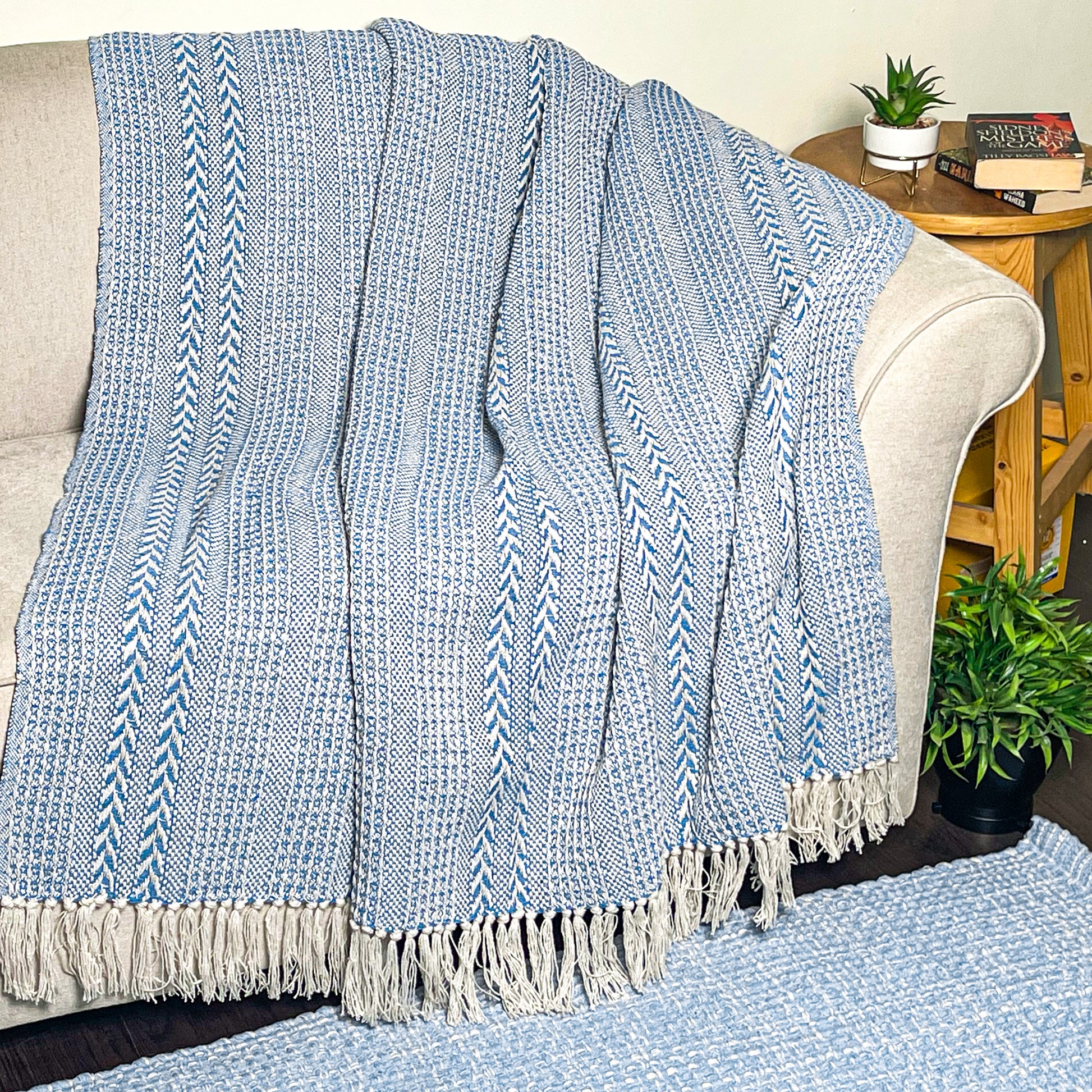 BRAIDED WAFFLE THROW, SKY BLUE-WHITE, 50''x60''