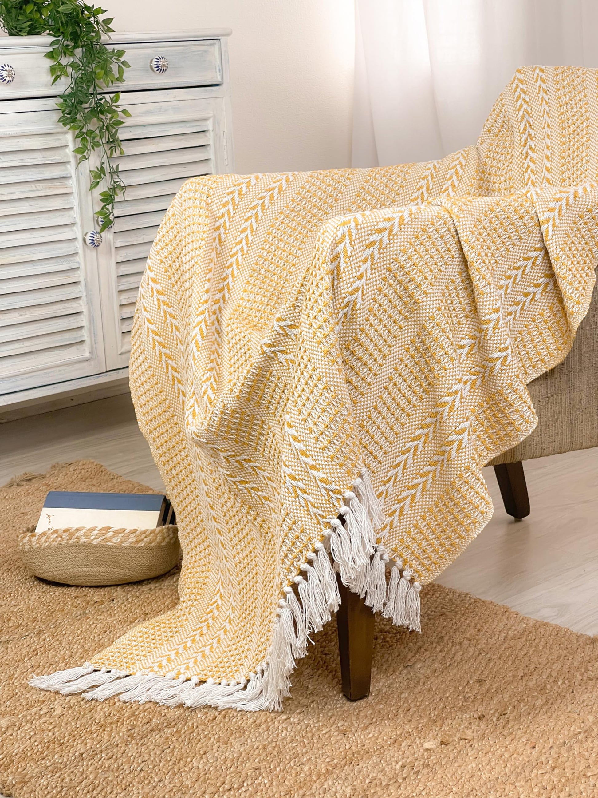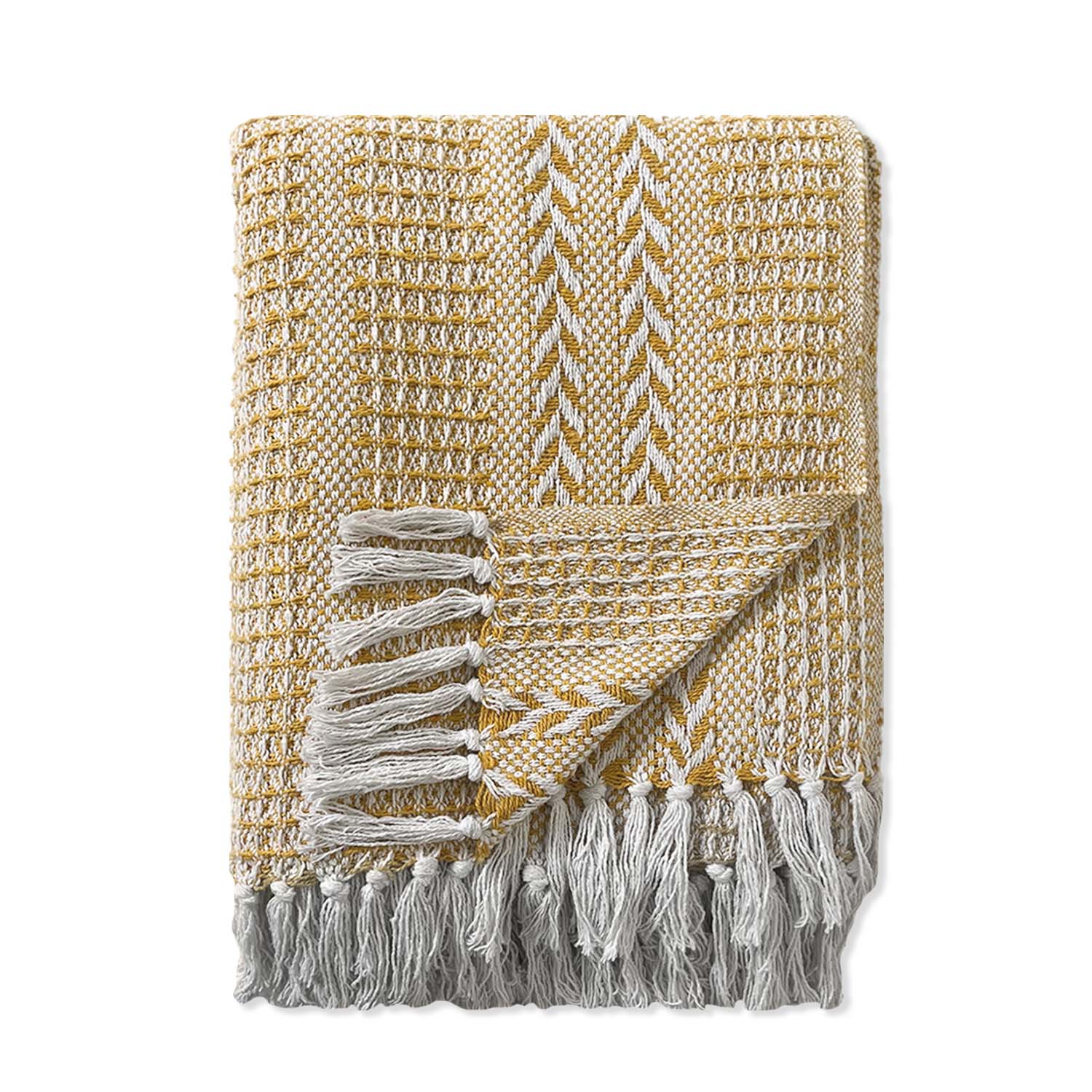 BRAIDED WAFFLE THROW, YELLOW-WHITE, 50''x60''