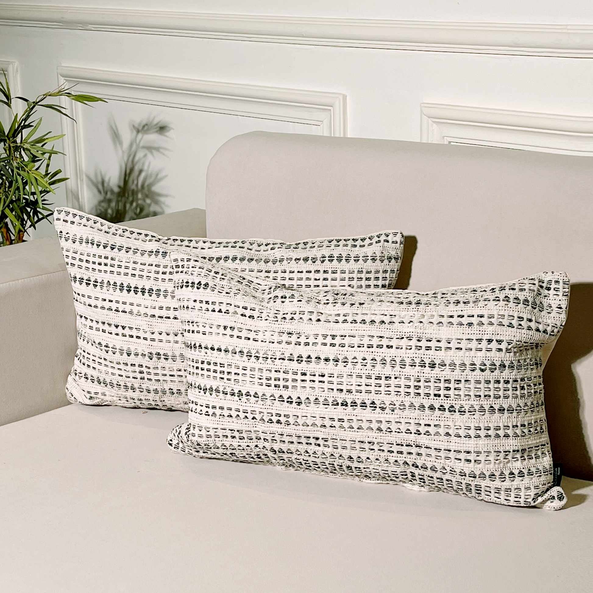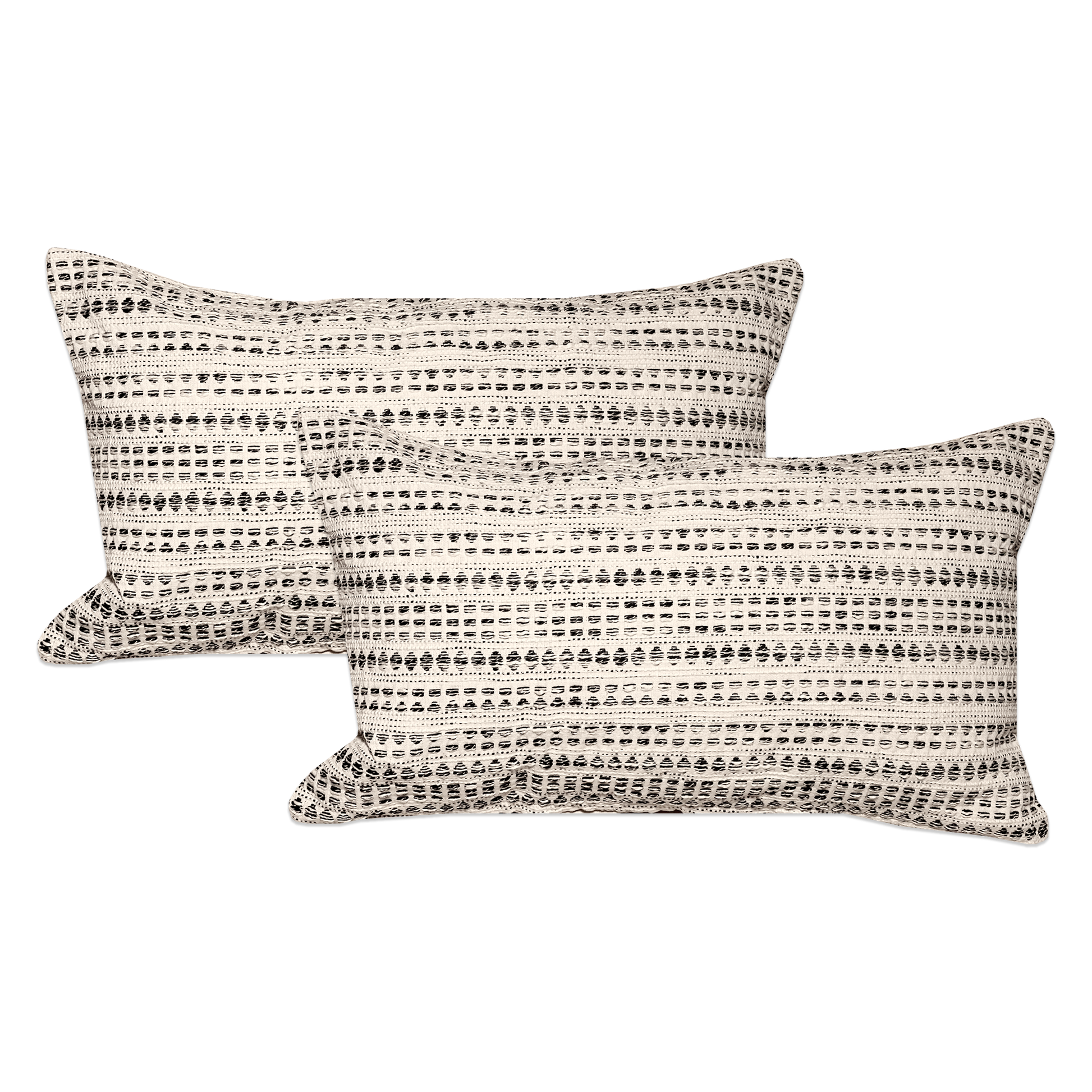 Lana Pillow Cover Set Of 2 - Ivory-Black, 12''x20''