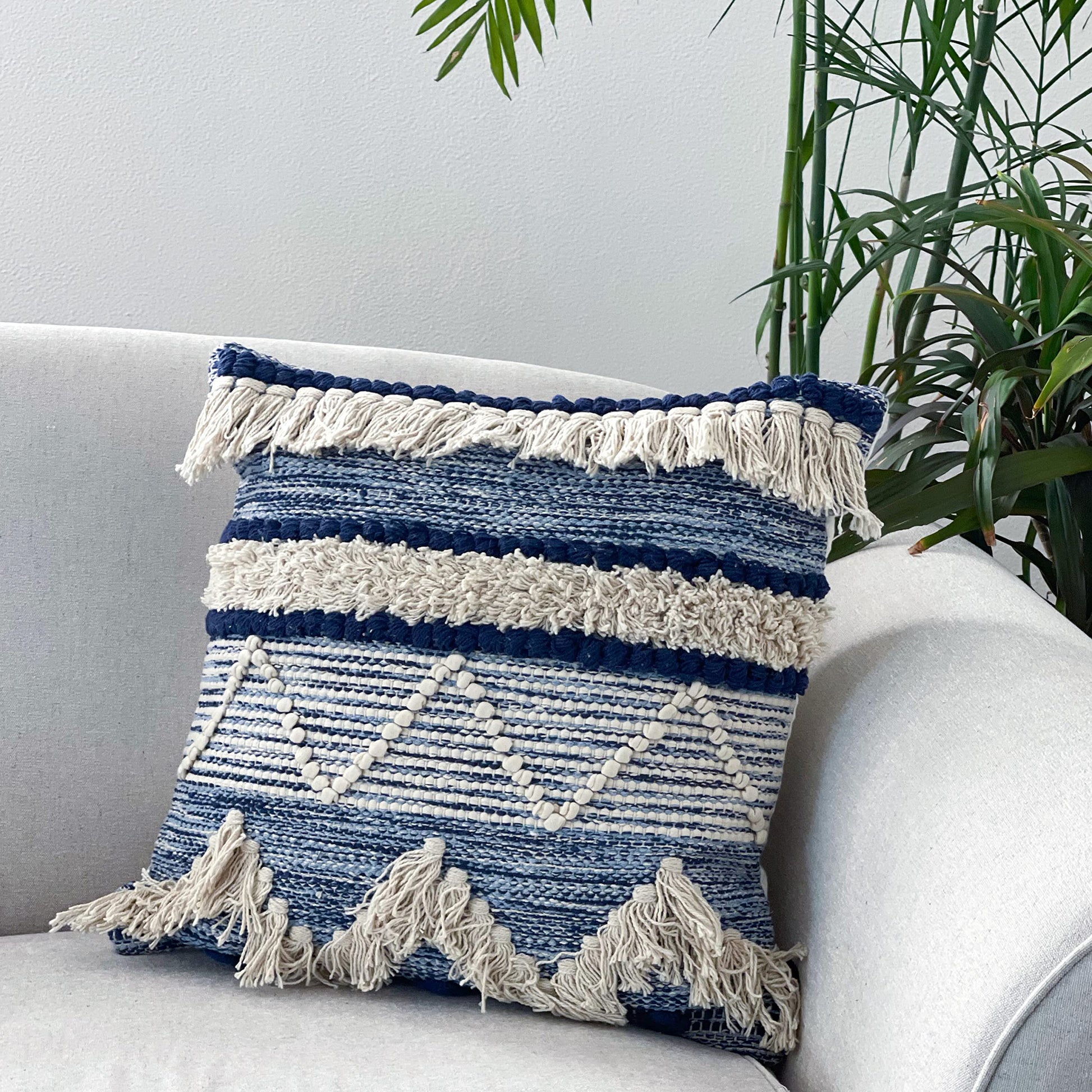 Montego Pillow Cover Set Of 2 - Blue/Off White, 18''x18''
