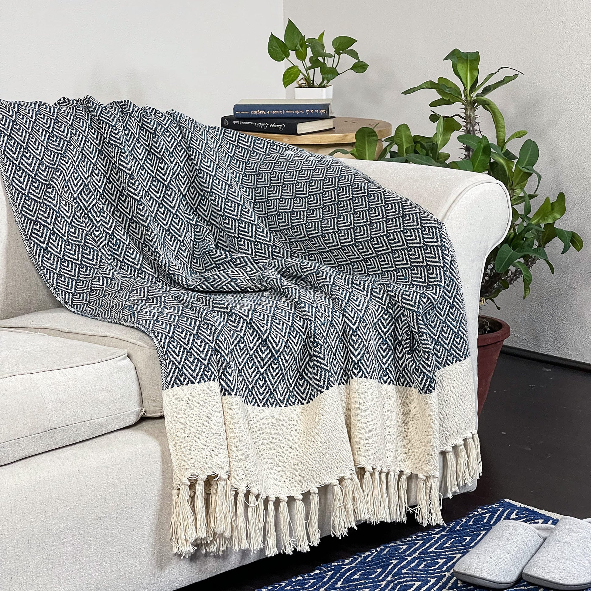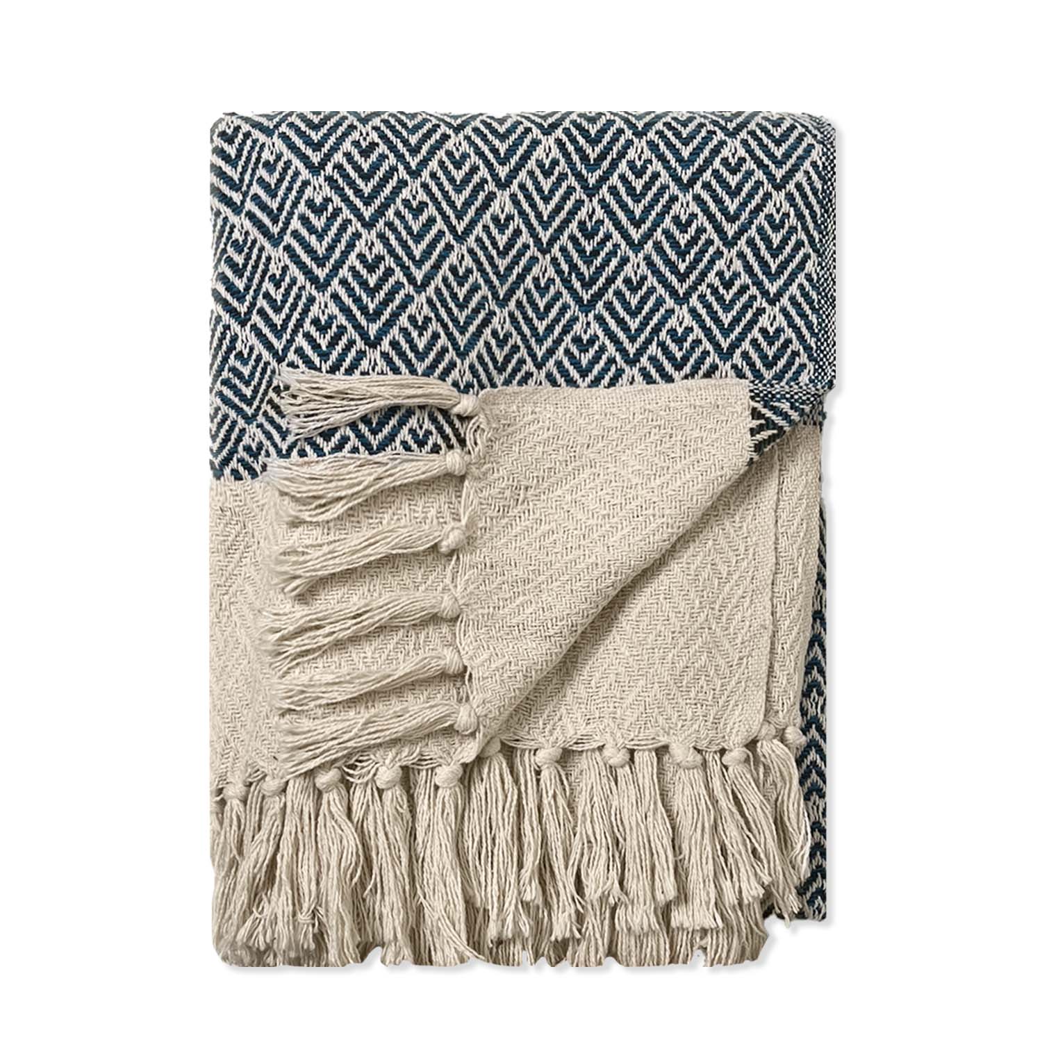 PEACOCK THROW, TEAL-IVORY, 50''x60''