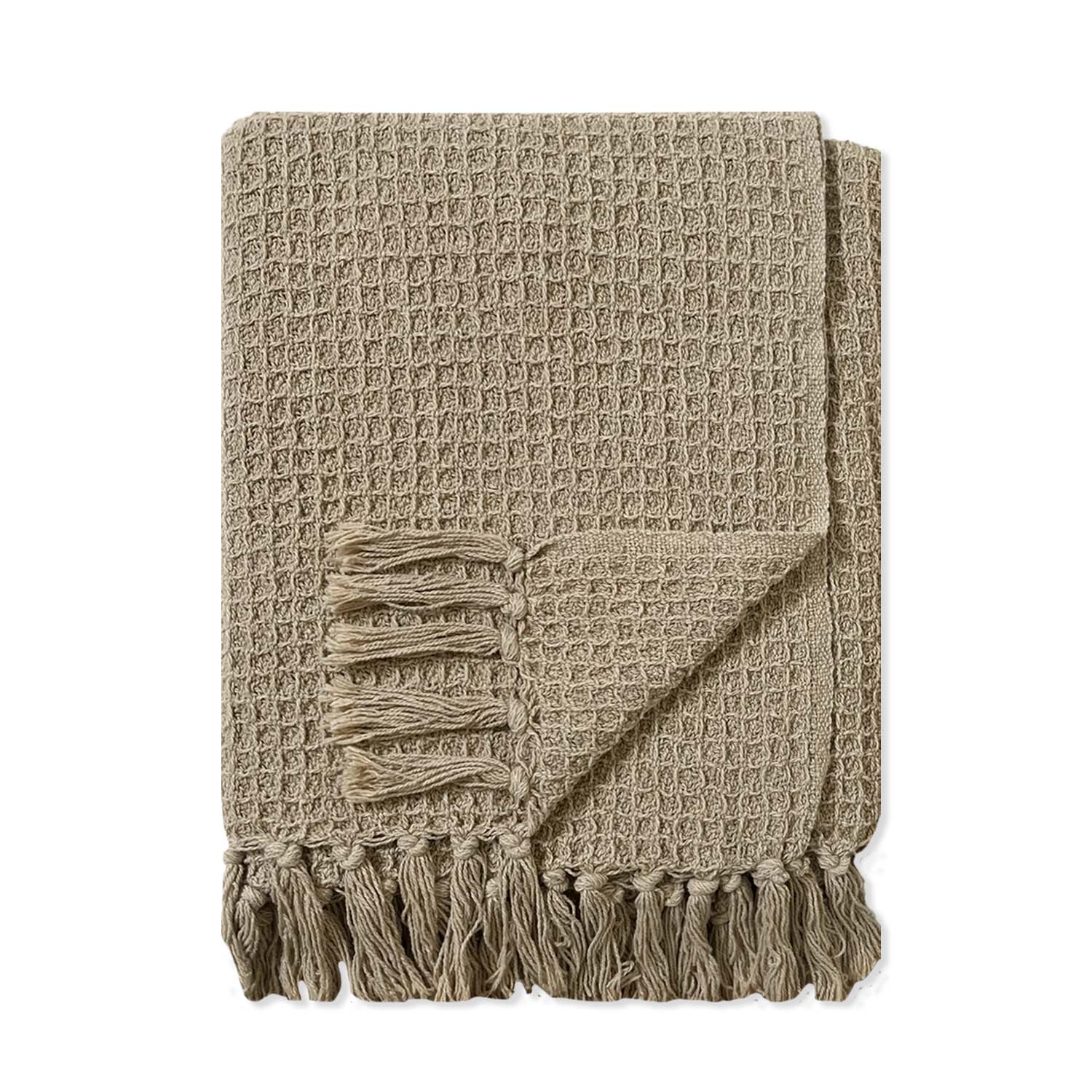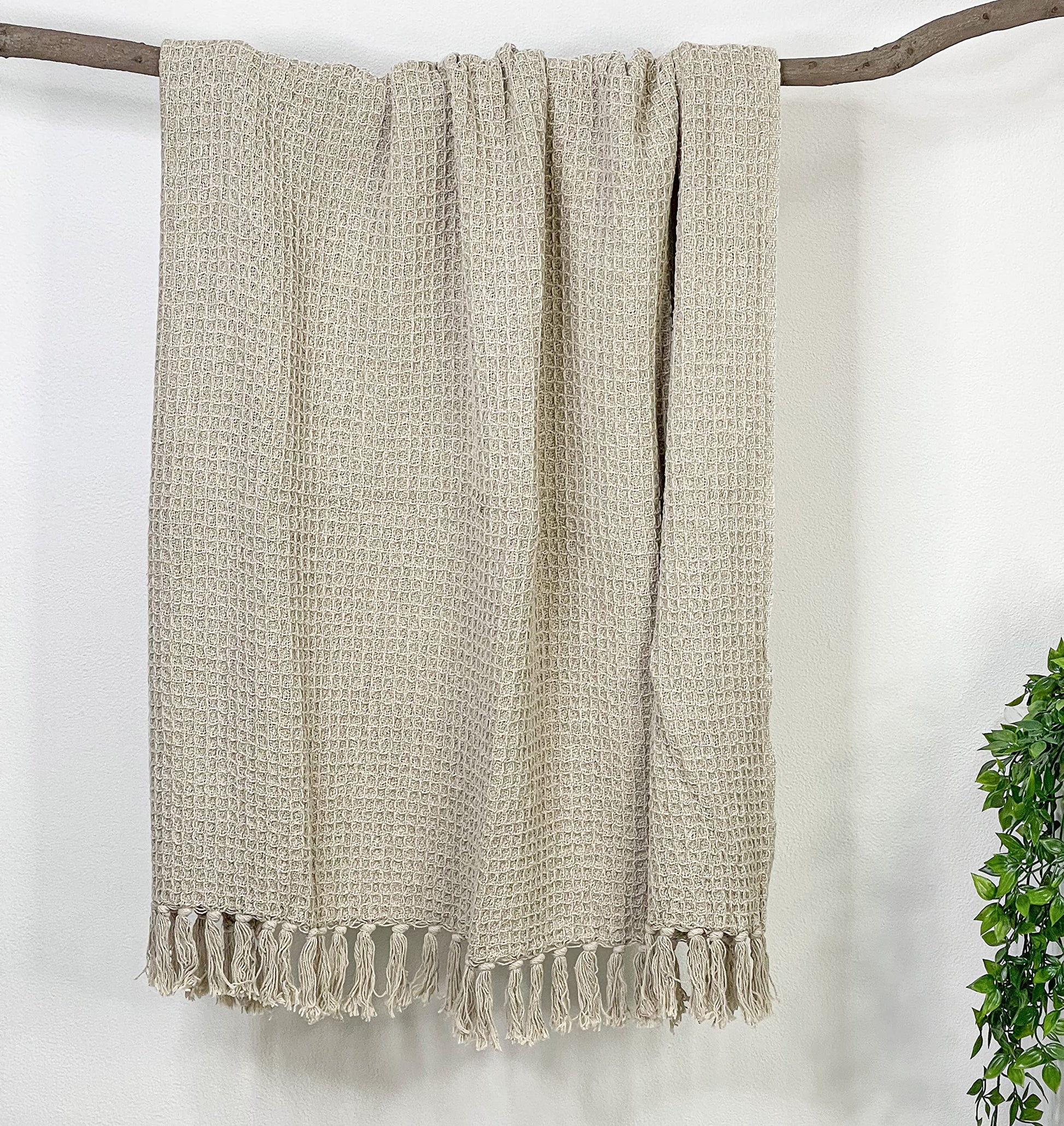 WAFFLE THROW, STONEWASH BEIGE, 50''x60''