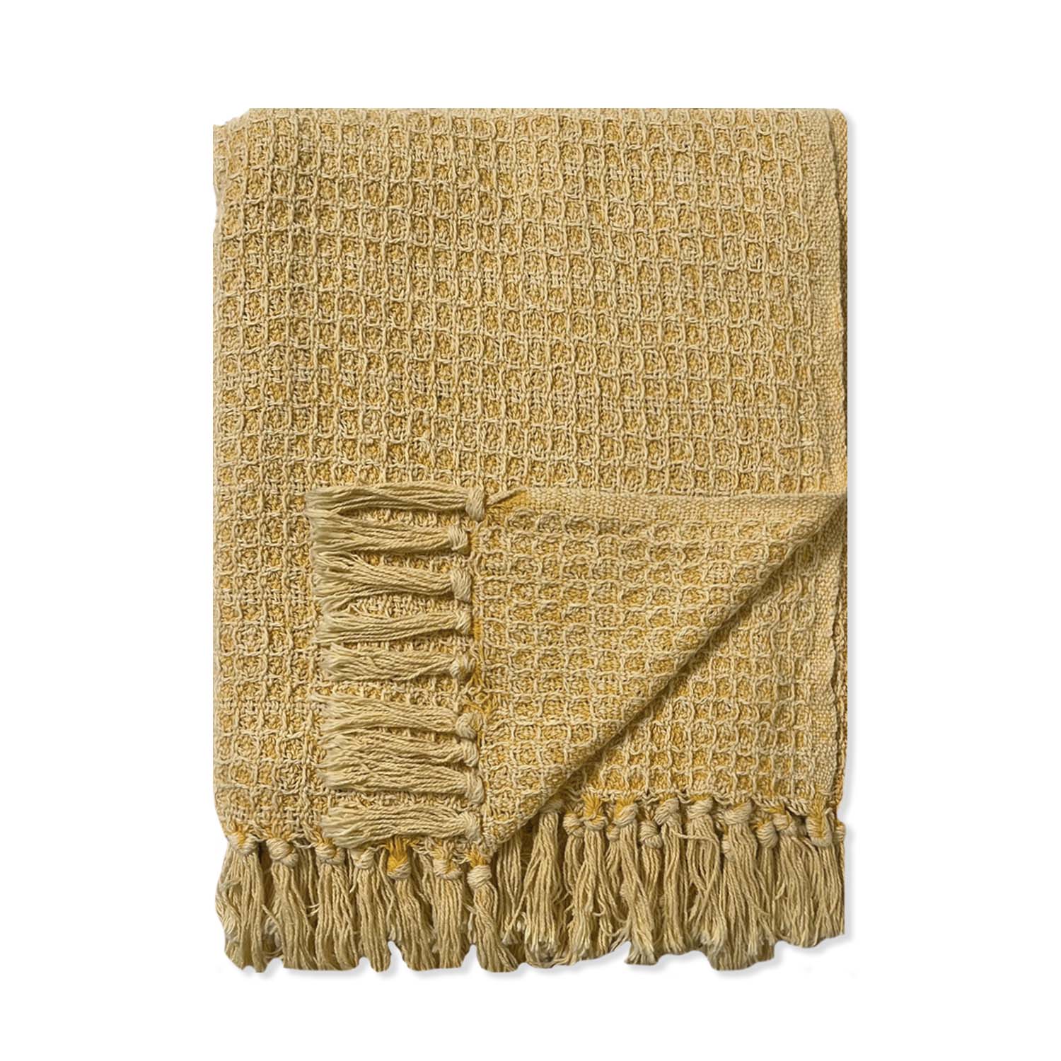 WAFFLE THROW, STONEWASH YELLOW, 50''x60''
